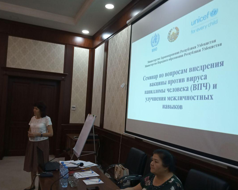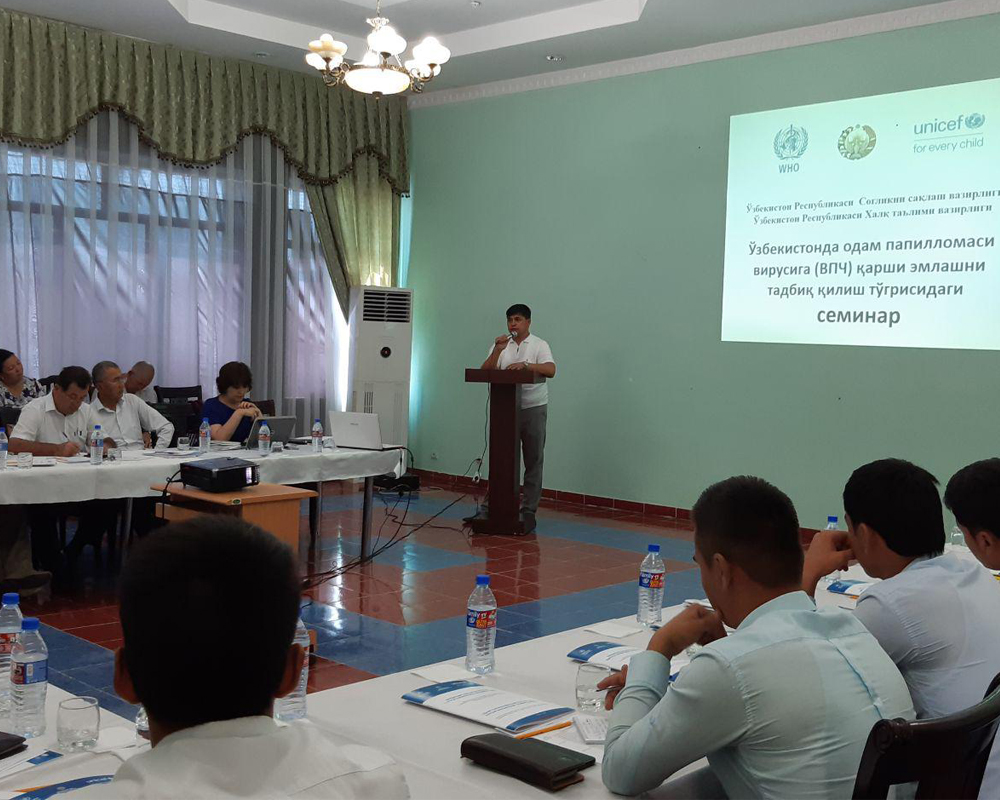 В настоящее время Министерство здравоохранения, при поддержке ВОЗ и ЮНИСЕФ, ведет большую подготовительную работу для внедрения ВПЧ вакцины. В течение года была организована серия мероприятий, в том числе научно-практическая конференция с международными и национальными экспертами в сфере профилактики и лечении рака шейки матки, рабочий визит делегации Узбекистана в Республику Молдову для изучения успешного опыта внедрения вакцины, строительство холодильных складских помещений для хранения вакцин. С 27 августа по 20 октября 2019 года будут проходить каскадные семинары для медицинских специалистов, учителей и медицинских работников школ по всей Республике.