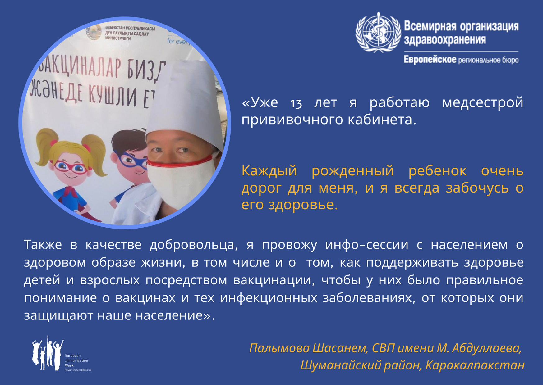 Каждый год в Европейском регионе ВОЗ отмечается Европейская неделя иммунизации (ЕНИ), нацеленная на продвижение вакцинации как ключевого инструмента профилактики заболеваний и сохранения жизней.