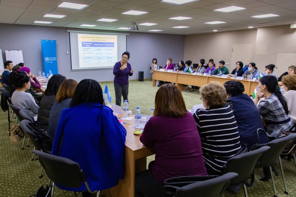 Тренинг ВОЗ по ложным противопоказаниям к иммунизации дает врачам поликлиник, среди которых есть педиатры, врачи общей практики, аллергологи  и невропатологи, возможность освежить свои знания в сфере предупреждения инфекционных заболеваний. Во время двухдневного семинара они получают последние данные по инфекциям и заболеваниям, новым вакцинам и безопасности вакцин, закупаемых для Узбекистана.